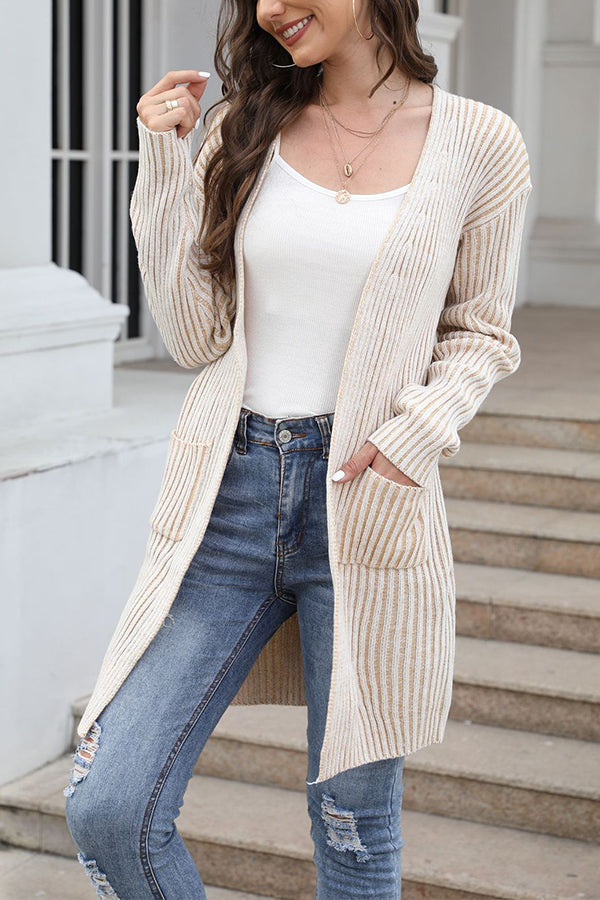 • women's ribbed cardigan pocket solid color knitted sweater coat