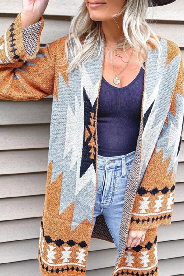 Mid-Length Loose Oversized Double Pocket Cardigan Sweater Jacket