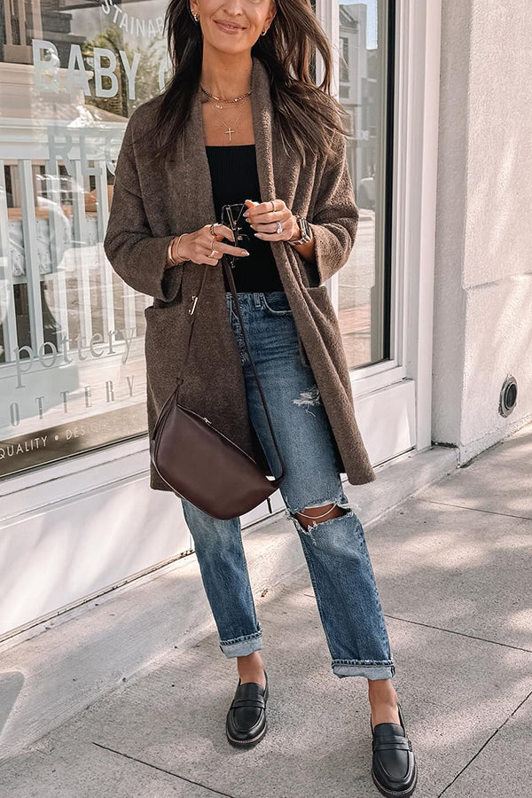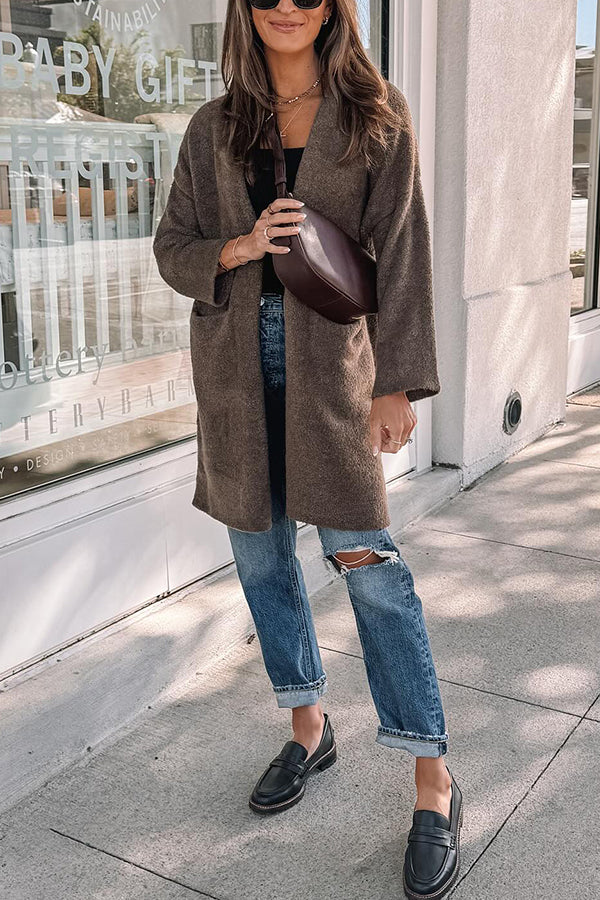 Large pocket loose simple cardigan