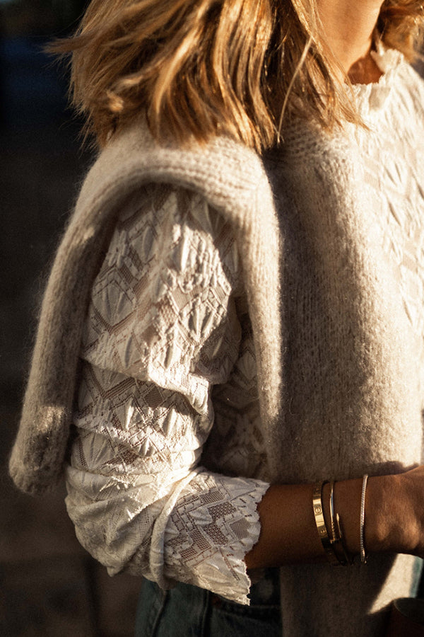 Cotton Linen Blend Patchwork Hollow Out Tassel Blouse