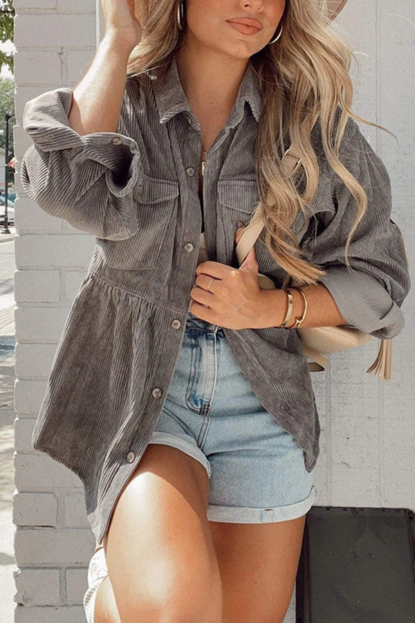 Lapel Corduroy Single-Breasted Jacket